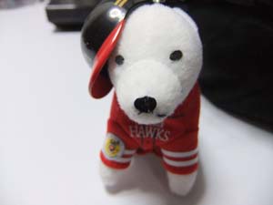 ユニフォームを着てヘルメットもかぶっているという、凝ったストラップです。